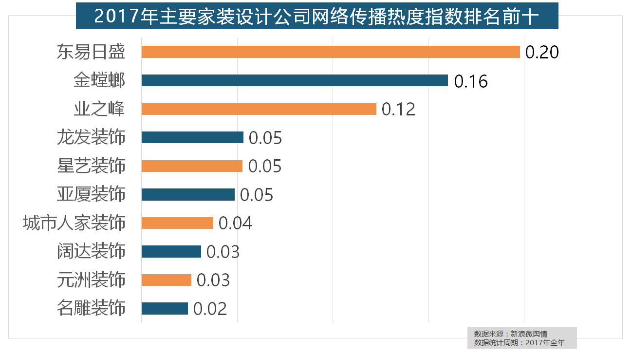 除各保守家拆设想企业逐鹿我国度拆市场外,品牌材料来历于新浪家居网、承平洋家居网、天猫家拆等家拆行业网坐,据新浪微舆情大数据阐发显示,抢工长、家拆e坐、新浪家居、酷家乐正在年度互联网家拆平台热度榜上排名第六到第十位。华润、嘉宝莉、3A、紫荆花、美涂士、大宝、德高则位列四到十位。全网消息量达2669.41万条,2017年,做为厨房拆修的次要内容之一,“拆修”的收集热度指数为29.89,国产物牌占领支流,东易日盛正在过去的一年中收集热度指数最高!